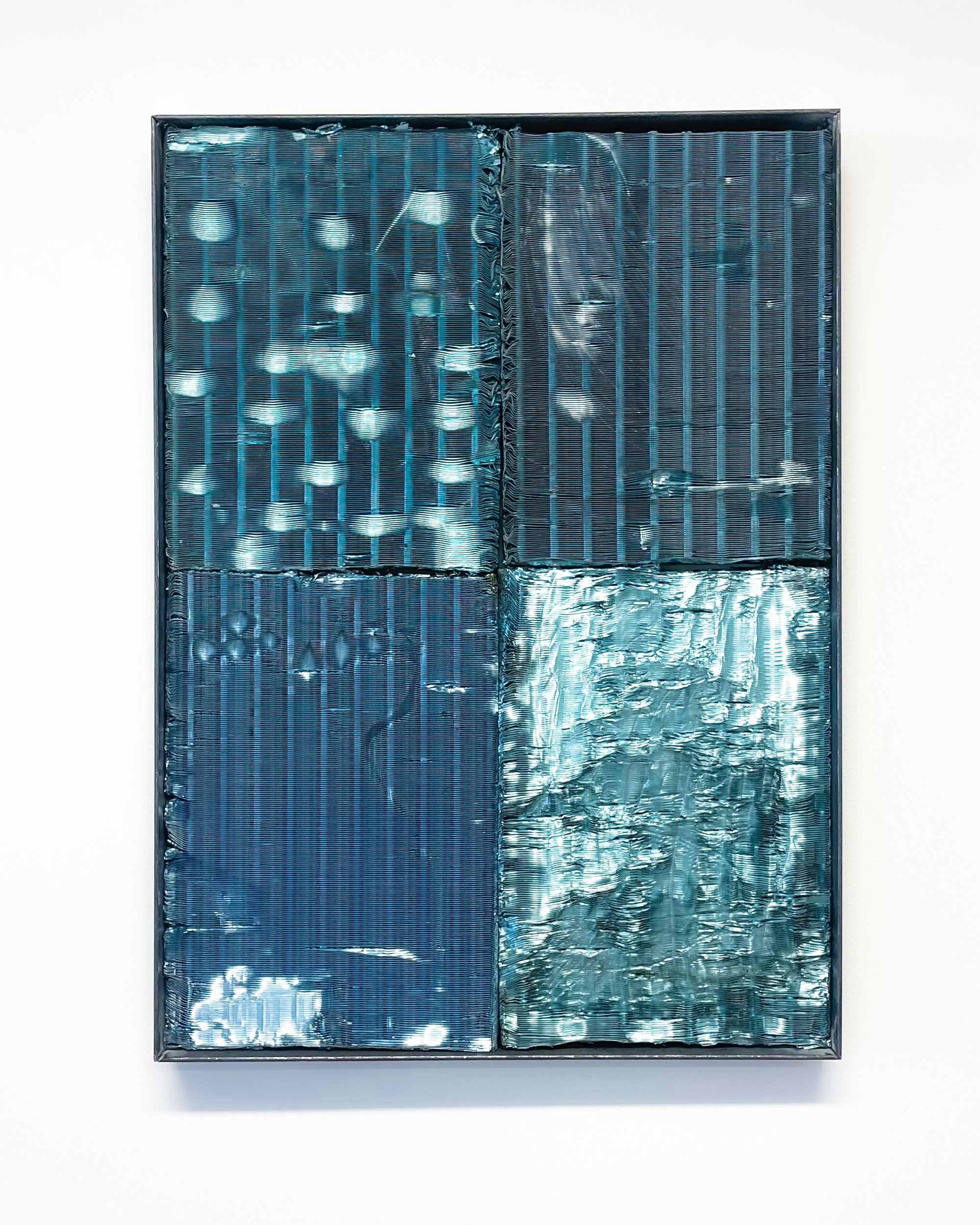 Henrik Nordahl, Seventh sense, 2024. Burned metal canvas, copper and aluminum tape, tin.Photo credit: Magnus Gulliksen